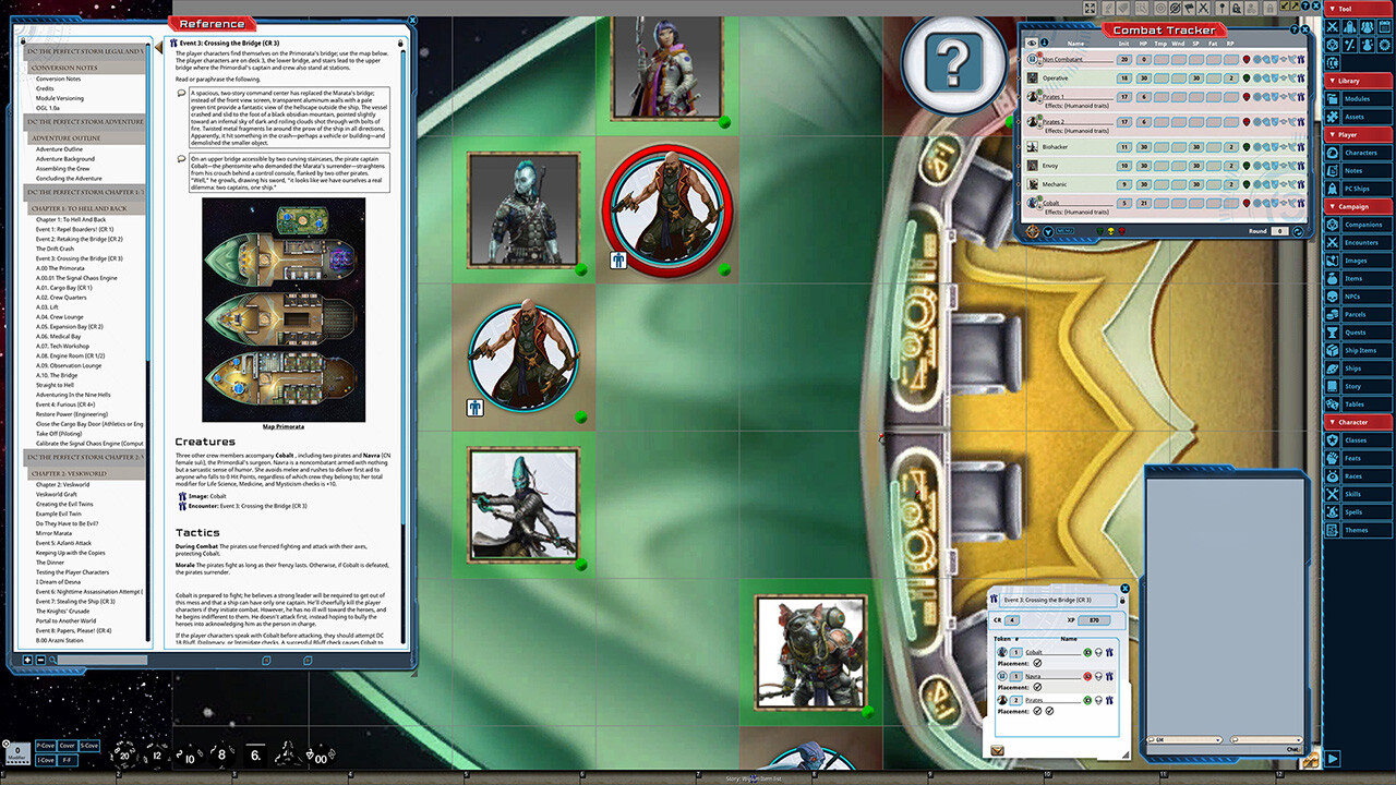 • Tokens for each encounter are all pre-placed in starting locations on the map. You can edit these on the fly.