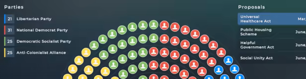Navigate the ever-shifting dynamics of political parties, influential individuals, vested business interests, and the opinion of the masses, all ardently pursuing their own agendas. Strive to strike a delicate balance, wielding your influence to command the legislative assembly, enact laws that align with your vision, or shape public opinion to your advantage during pivotal elections. For those who dare, the path to authoritarian rule beckons, as you gradually centralise power under your firm control.