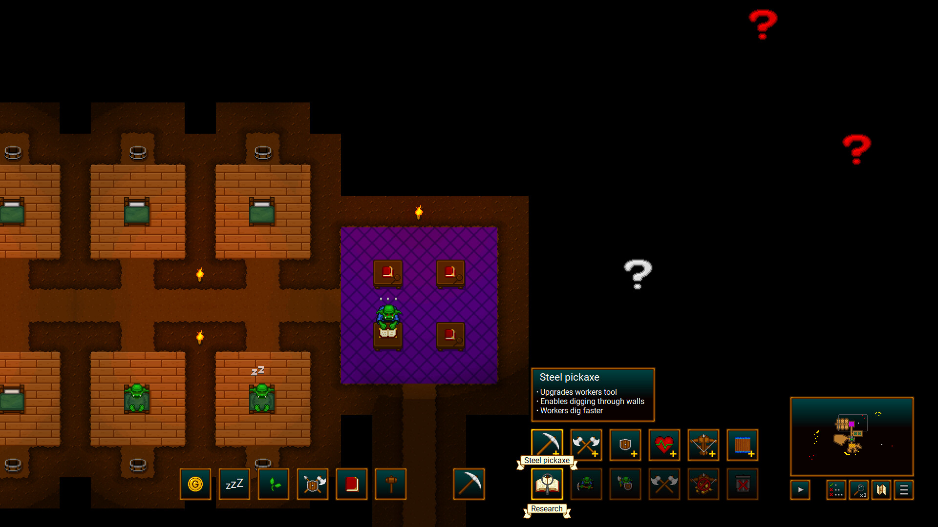 Supply your goblins according to their needs such as beds for sleep and food for hunger.