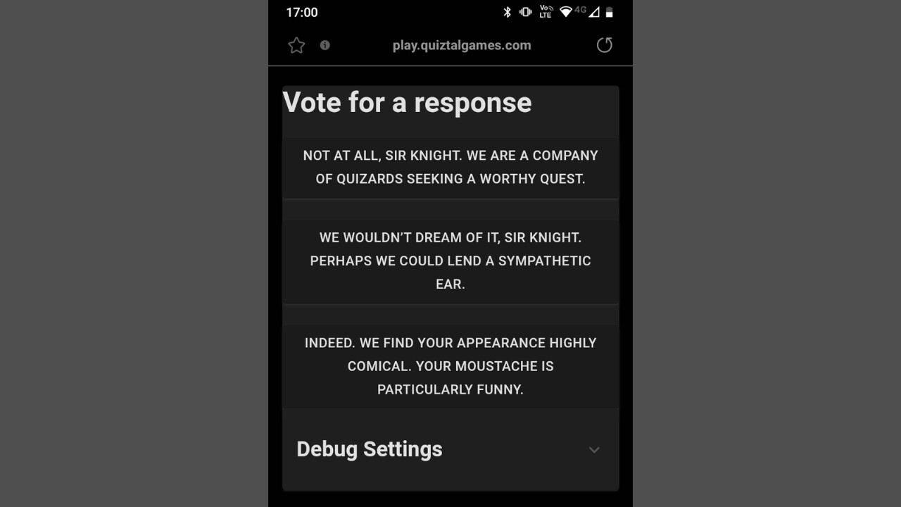 The fallen knight Sir Answerlot needs you to take up his failed quest to rid the kingdom of its most hated tormentor: the evil dragon Spontanius the Combustor. You will need to keep your wits about you as you encounter many allies and enemies, make many crucial decisions and answer many, many quiz questions along the way.