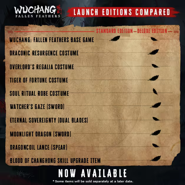 WUCHANG: Fallen Feathers is a soulslike, action RPG set in the land of Shu during the dark and tumultuous late Ming Dynasty, plagued with warring factions and a mysterious illness spawning monstrous creatures.