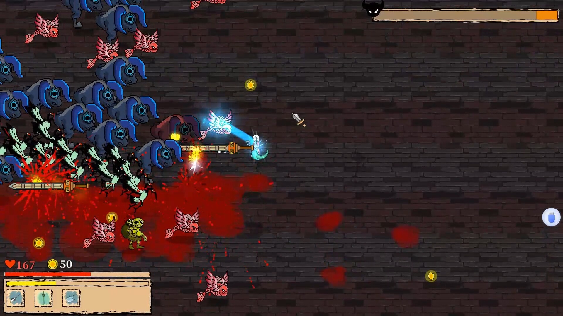 This is a innovative Roguelike game. We've replaced traditional, linear skill progression with a revolutionary custom skill system.With this system, you can transform a simple fireball spell into a rapid-fire fireball machine gun, or even a high-damage, wide-area fireball cannon!