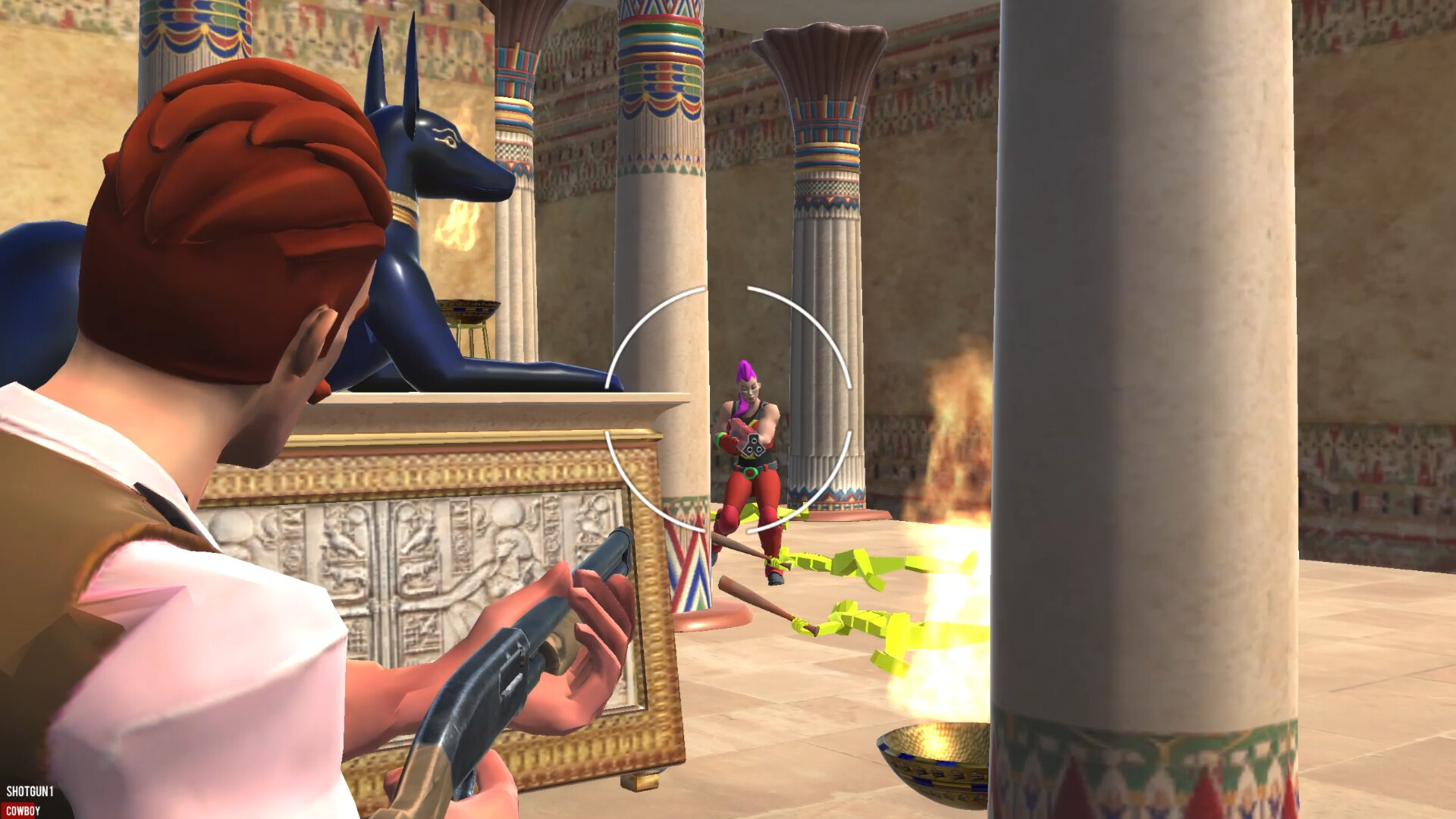The game is 3D in open world which describe the our Egyptian culture. face your bad enemies and beat the bosses and enter the building to see easter eggs.