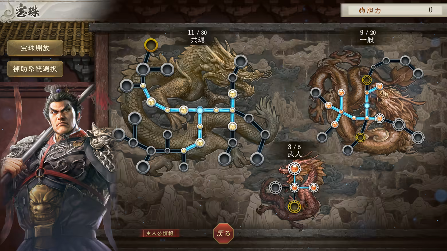 多彩な効果の「宝珠」をどれから開放するか、より自由な武将育成が楽しめる。