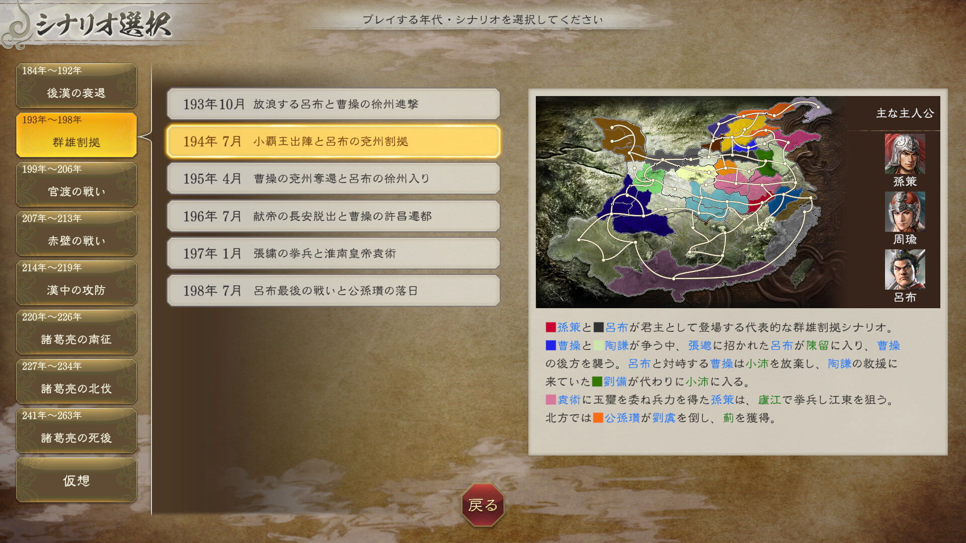 80年以上にわたる55本以上のシナリオ、君主から在野まで、シリーズ最多1,000人の武将たちが登場。広く、深く、激動の三国時代を遊びつくせ。