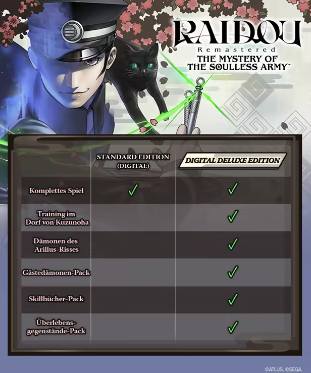 RAIDOU Remastered: The Mystery of the Soulless Army - Digital Deluxe Edition enthält: