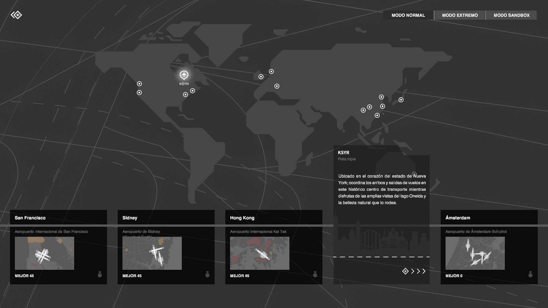A medida que avanzas en el juego, podrás desbloquear mapas de espacio aéreo más detallados y así, demostrar tus habilidades de control de tráfico aéreo en espacios y aeropuertos de todo el mundo.
