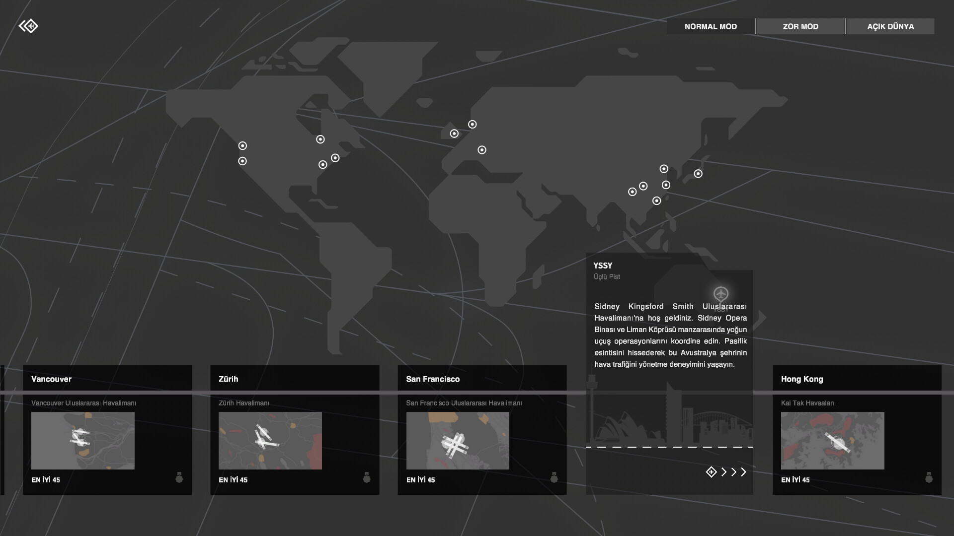Oyunda yoğun bir hava trafik kontrolü olarak rol alarak uçakların inişini ve kalkışını yönlendirecek, havasahalarını yükseltecek ve en önemlisi çarpışmamalarını sağlaycaksınız!