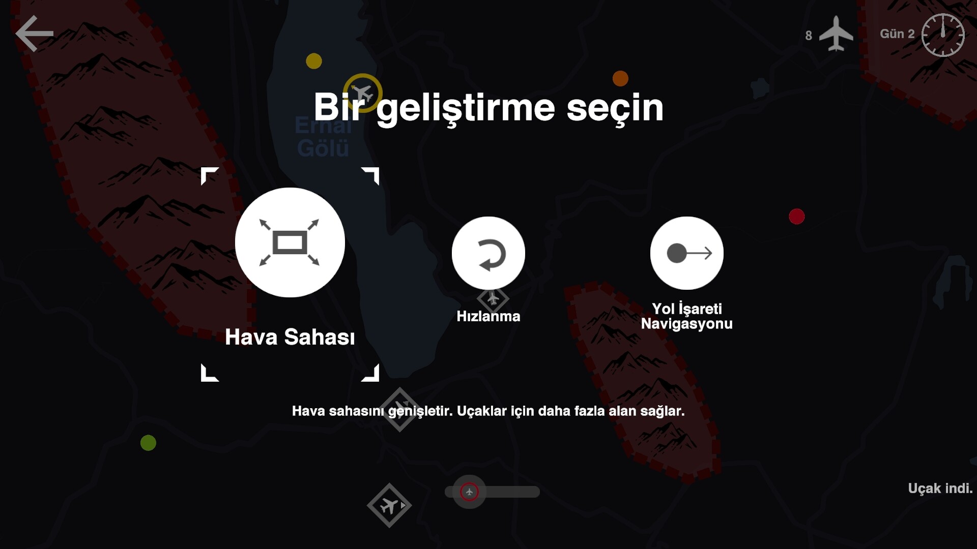 Tamamladığınız her bir gün sonunda havasahası genişletmesi ve oto bekletme gibi havasahası ve havalimanı için bir yükseltme seçebileceksin. Akıllıca seçimler yapmak işini kolaylaştıracaktır.