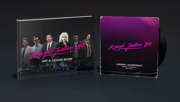 The Rough Justice: '84 Supporter Pack contains the Original Soundtrack (OST) with 18 tracks as well as an Art & Design book with over 200 pages.