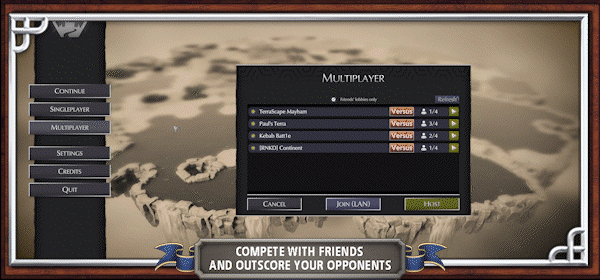 Play exciting multiplayer matches with your friends! Develop your own strategies and thwart the plans of your opponents. Take advantage of stategically placed buildings and build up your point lead round by round.