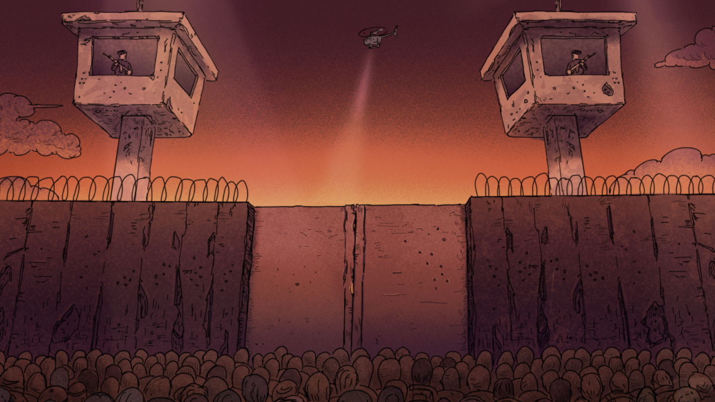 You and your daughter are in a conflict zone and running low on food, you must travel to the border and try to enter the neighboring country. The path to the border is full of other refugees asking for your help. The more refugees you accept in your party, the tougher will be your journey.