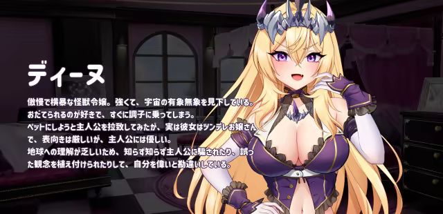 ディーヌと交流しながら情を育むとともに、彼女に与えられた征服命令を期限内に完遂しなければならない。もちろん、夜の添い寝も欠かせない。