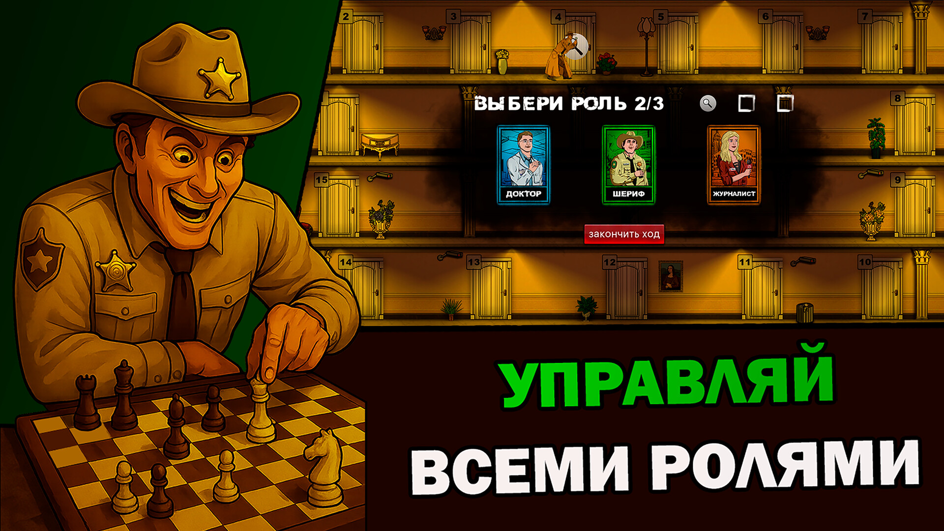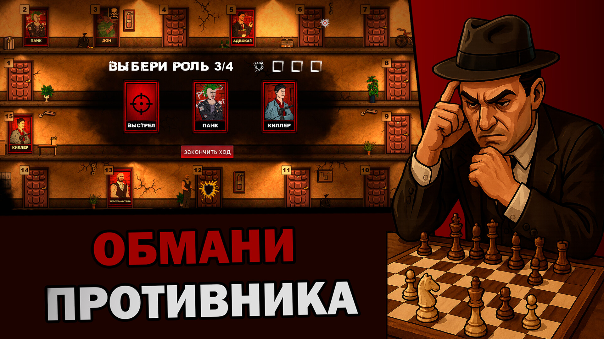 Desktop mafia online in a new format 1 on 1. There is no communication in the game. You yourself play for the entire mafia team or the entire peaceful team. Among the 15 inhabitants of the house there are 5 killers, find them as civilians, or fool your enemy as the mafia. There are many roles in the game, from which you yourself can assemble a unique composition and come up with your own victory tactics. Compete with other players and increase the rating or play with friends.