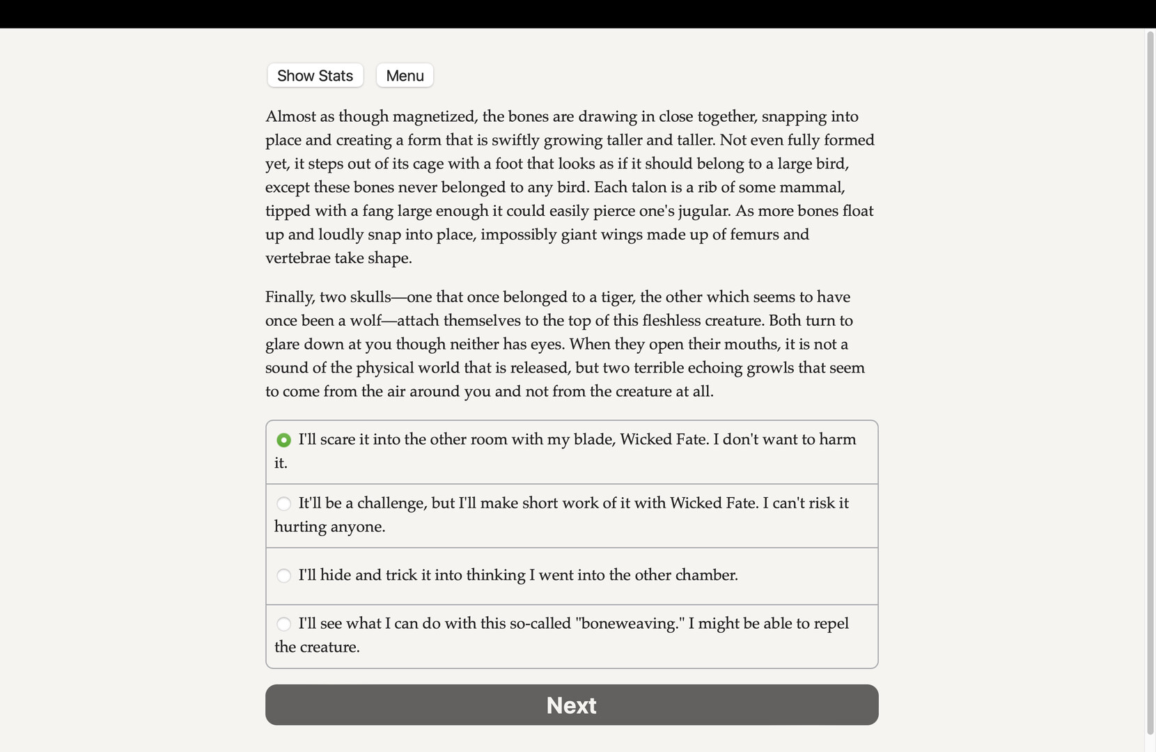 Undying Fortress is an interactive dark epic fantasy novel by Yeonsoo Julian Kim, author of The Fog Knows Your Name, where your choices control the story. It's entirely text-based, 500,000 words and hundreds of choices, without graphics or sound effects, and fueled by the vast, unstoppable power of your imagination.