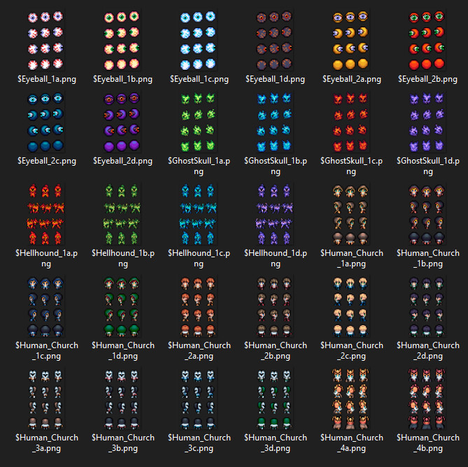 - 18 unique static battler sprites based on evil creatures and holy warriors!