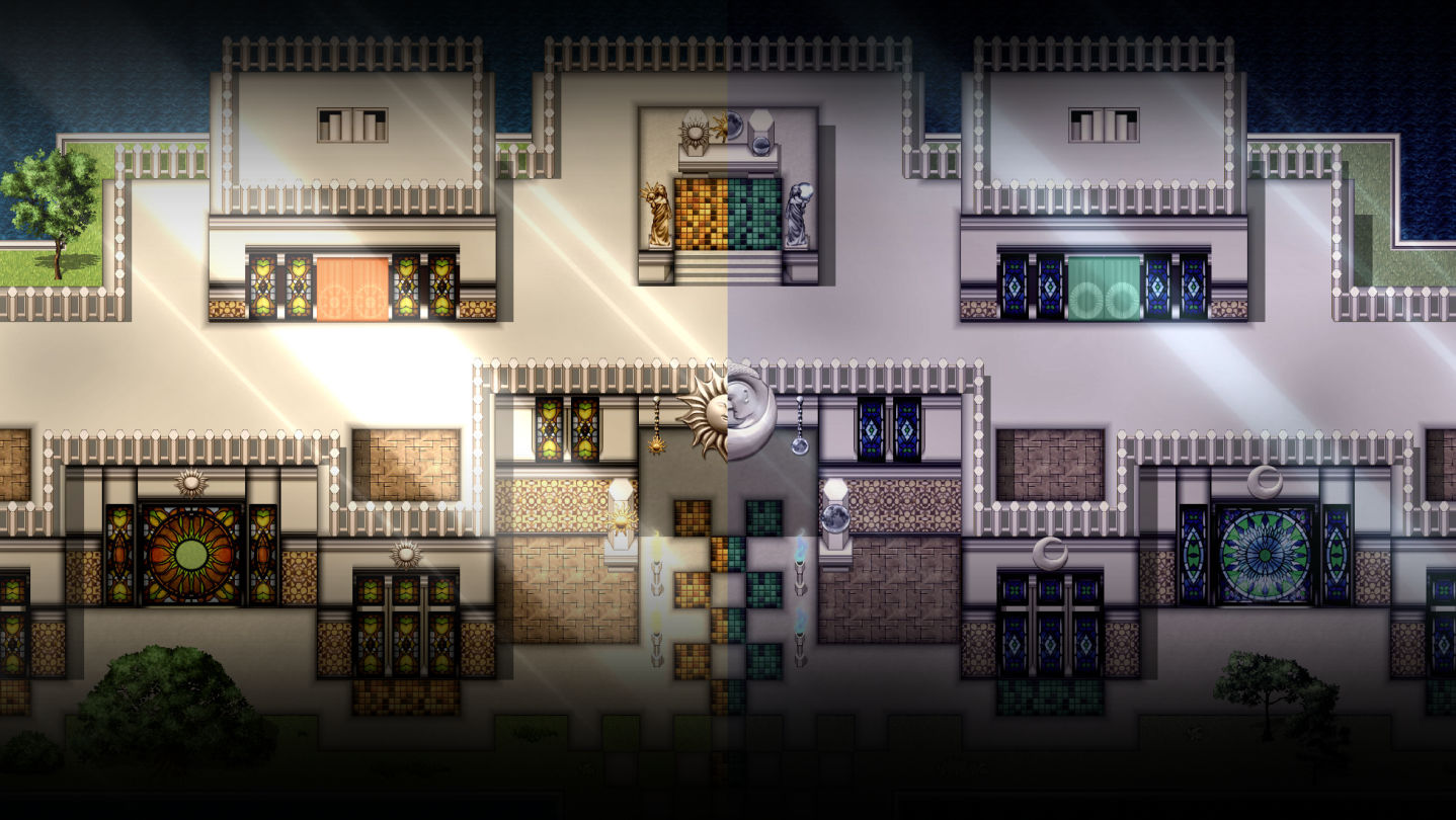 Explore a two-sided temple of light and dark for RPG Maker! With the Sun and Moon Palace, create a dungeon with a fun flip side…just swap the tileset for an instant shift in mood!