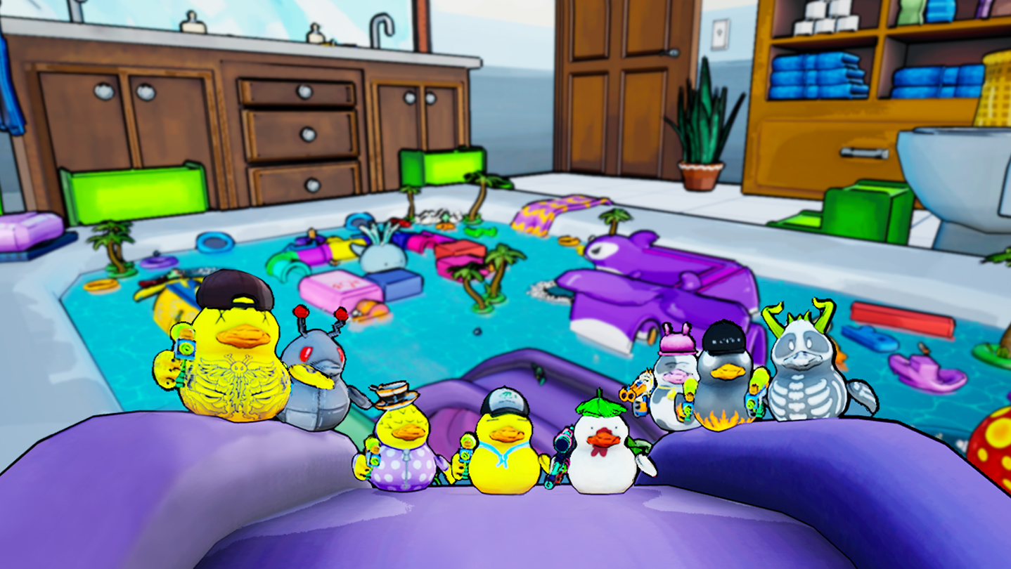 Play as a Rubber Ducky in this 3rd Person Arena Shooter! Utilize squirt guns and water abilities and sink your opponents to become top duck of the tub! Battle it out in the Bubble Bath Battlefield or the Stormy Sandbox. Customize your ducky to make sure the lobby knows who's the Smack Down King!