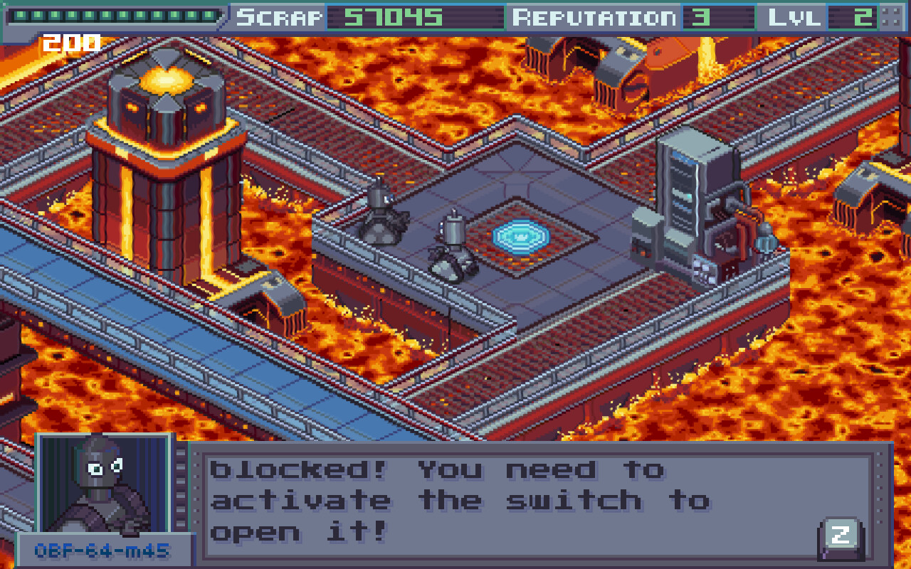 You play as the robot, GT-6301, discovering the Evil Factory’s secrets and fighting for the freedom and dignity of robot-kind. Explore the factory, inside and out, dodge security drones, and stop the robot foreman’s evil plans. Make well-intentioned allies along the way as you enter the factory’s themed sectors and oppose their slave-driving officers.
