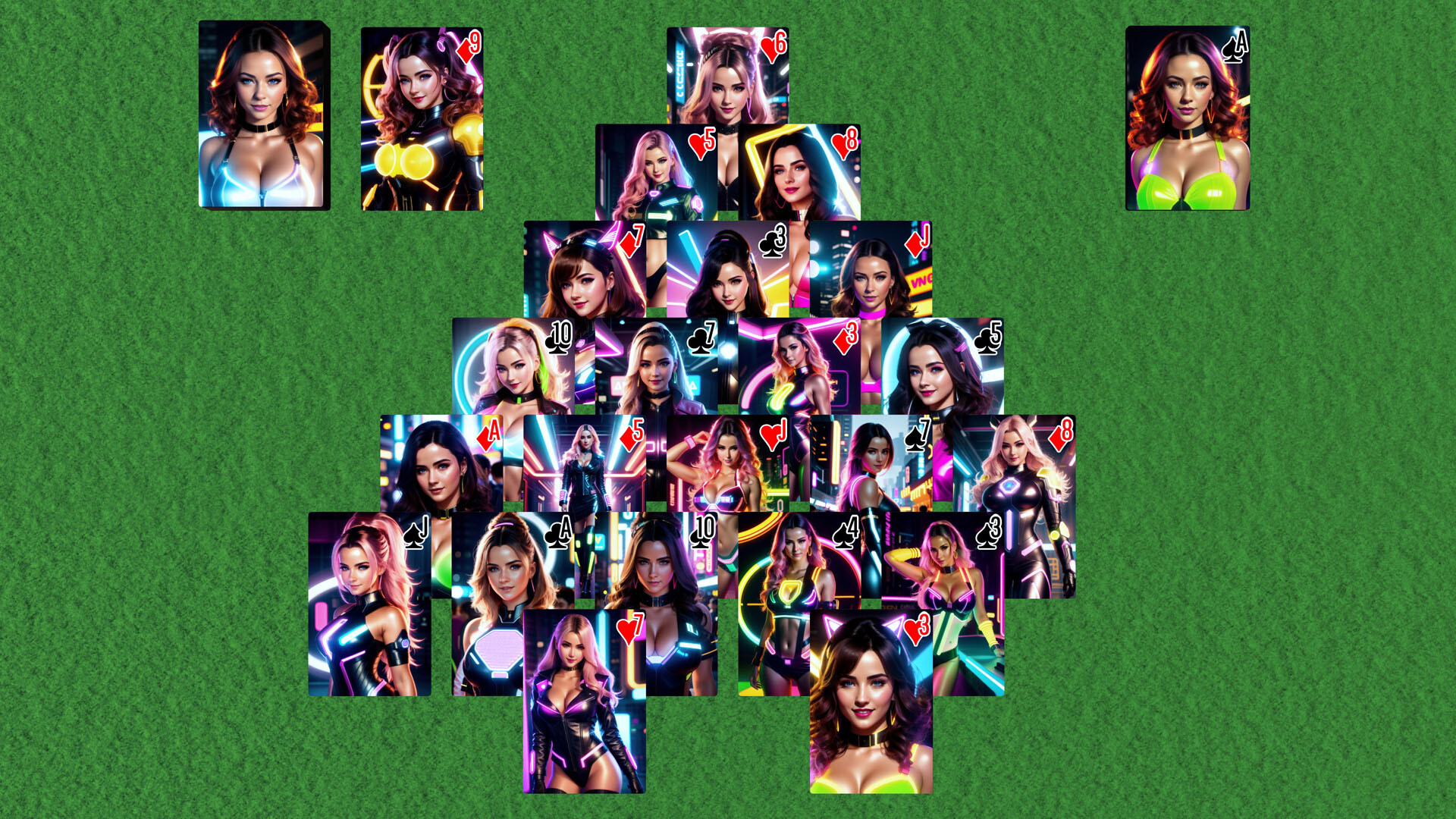AI Solitaire is intended to be a celebration of AI Generated Art. The content often includes beautiful women or handsome men. The outfits and costumes can be revealing. Various art styles may feature exagerated proportions. Swimsuits and sexy clothing will always have a minimum of a Teen+ rating. Overly exagerated female proportions or wearing lingerie will be rated Adult. The base game doesn't contain any nudity or Adult rated decks. The "Steampunk Beauties" deck is about as racy as a Teen+ rated deck would get.