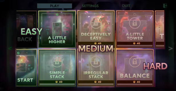 You'll start with the simplest of towers, but you'll soon be dealing with drop zones, time manipulation, logic puzzles, gravity sliders, multi-zones, pivot blocks, ungrabbable blocks, interlocking blocks, bridges, weights and even a level built to play like a pachinko machine.