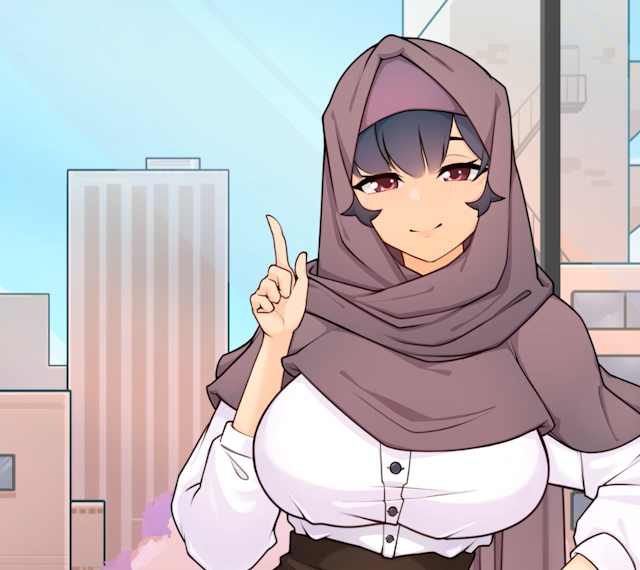 • Visual novel: learn more about working at TSUNDERE MILFIN, and of course get to know your cute Muslim colleague better :3