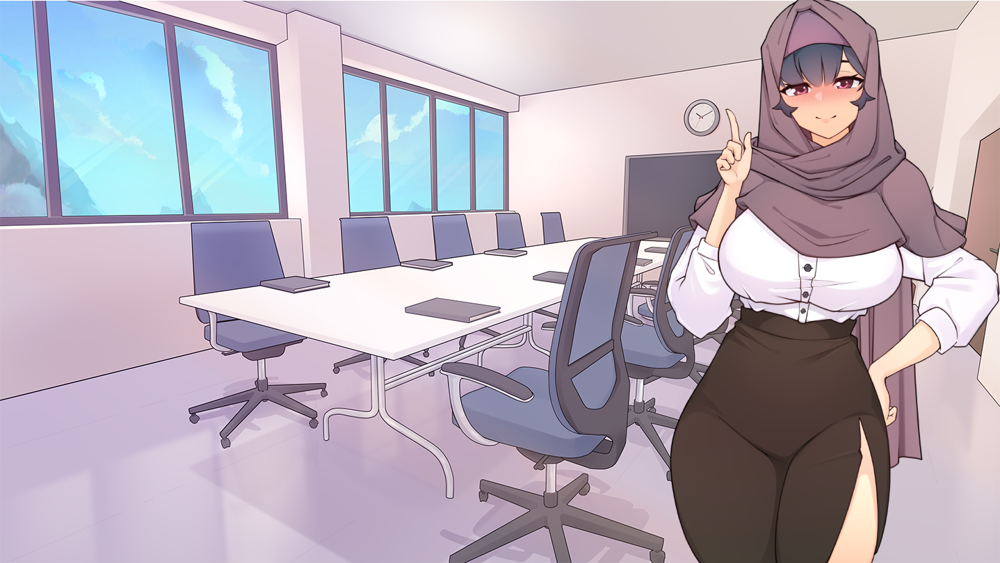 • Visual novel: learn more about working at TSUNDERE MILFIN, and of course get to know your cute Muslim colleague better :3