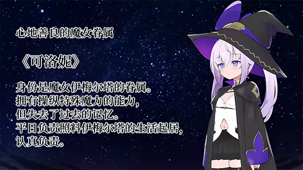 本游戏讲述一位丧失记忆的少女可洛妮,在小村庄里的魔女的鼓励下, 心怀对村民的感激之情,从不拒绝来自村民们的请求,逐渐成长的故事。