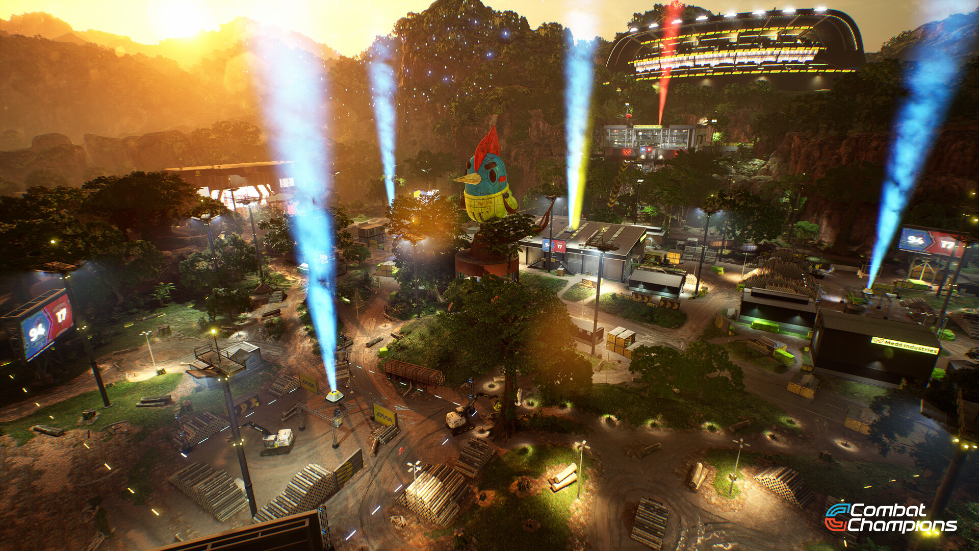 Combat Champions is a fast-paced, first-person shooter where players drive the crowd wild with over-the-top stunts and map-altering destruction, all while holding key points and outshooting the opposition. It's Corporate conflict at its finest, all televised by the Corporate Mediation Alliance!