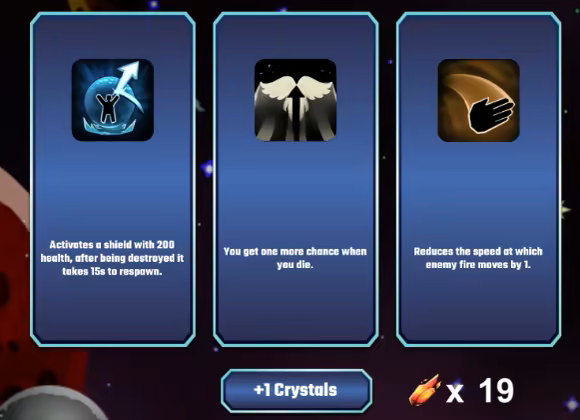 "Galactic Gladiators" is a 2D top-down shooter where you control a spaceship battling against enemy forces. Choose cards for unique abilities, collect crystals to upgrade, and defeat bosses to progress. Test your combat skills in this thrilling game.