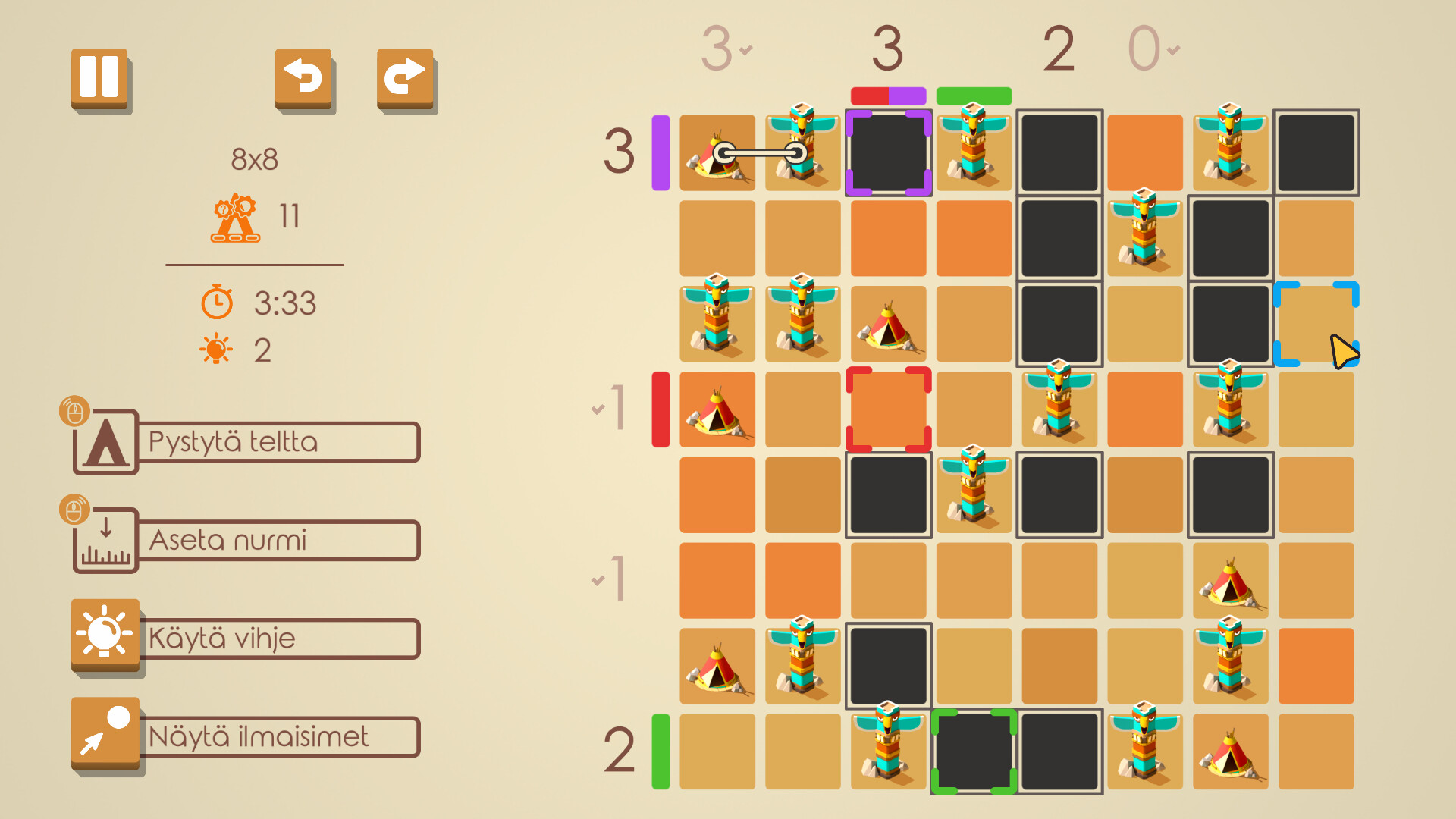 Pystytä omaperäisessä pulmapelissä kunkin puun luo teltta!