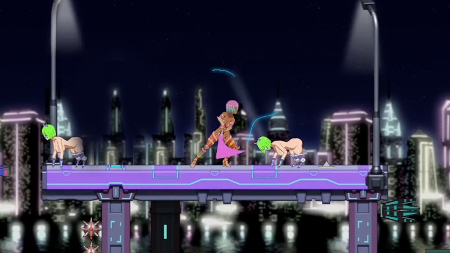 The game features nude females as the character and enemies. While none of their interactions are sexual in nature, during the game over scene, one of five animated scenes are shown depicting animated non-consensual machine-based sex.