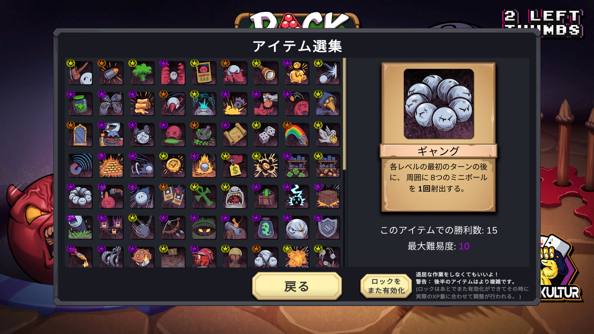 勝利は難易度やモードごとに追跡されるだけでなく、ランで勝利したアイテムごとに難易度固有のバッジも受け取ります。 あなたの アイテム概要 全部集めてください!