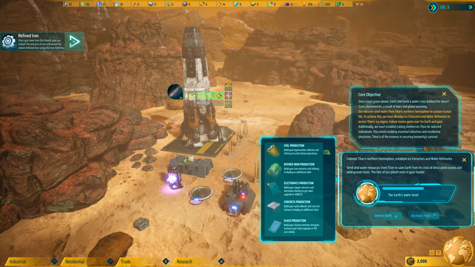 You take control of a corporation tasked with establishing humanity’s first large-scale off-world colony while Earth is collapsing due to extreme water shortages caused by climate change and global conflict. Your mission is not only survival on Titan, but also supporting Earth’s remaining population through resource extraction and interplanetary trade.