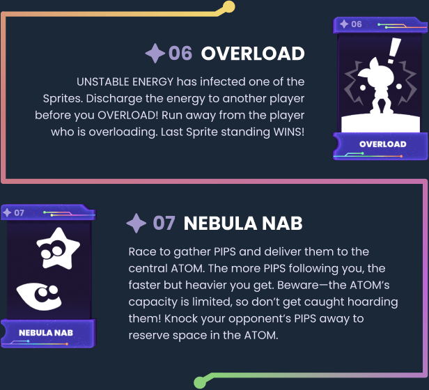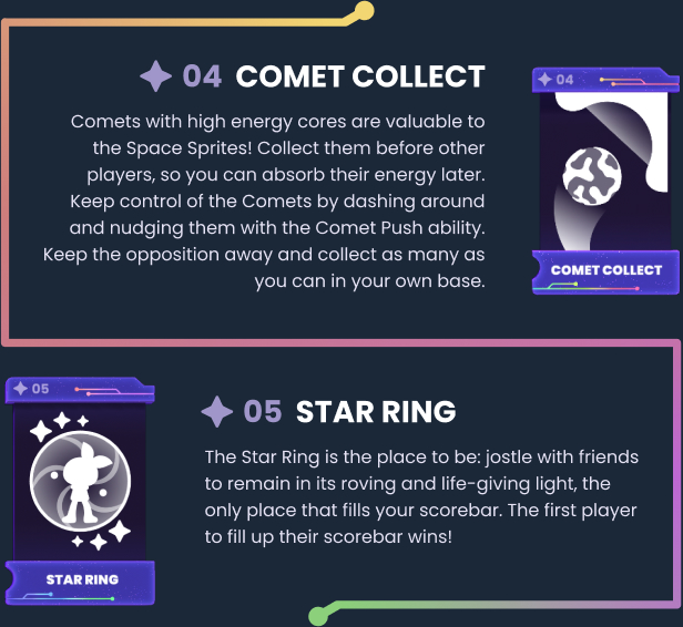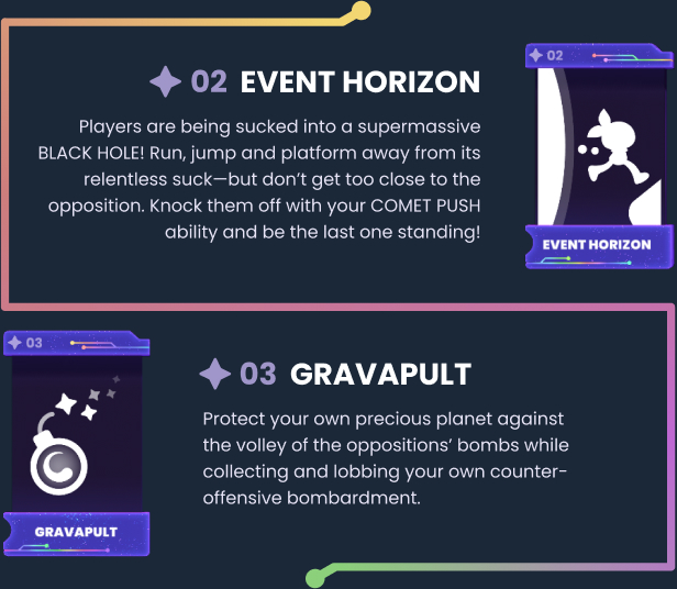Perform graceful gravity gymnastics, outrun the relentless pull of a black hole and launch your friends into space as you compete across multiple events in the Galaxy Games!