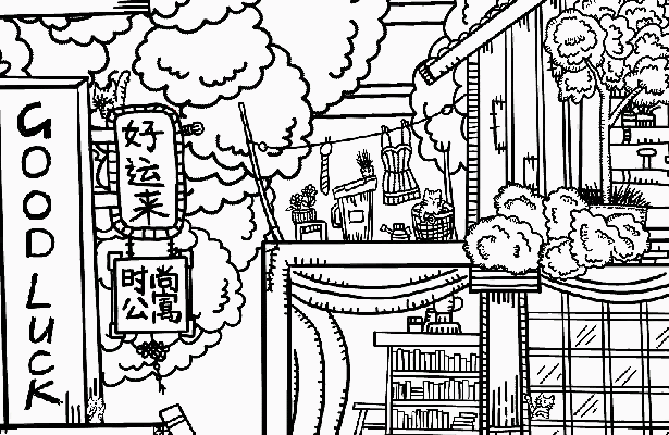 Find the hidden cute cats in the relaxing hand-painted town scenery.