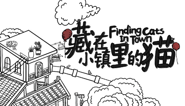 在令人放松的手绘小镇风景中,寻找隐藏的可爱猫咪。