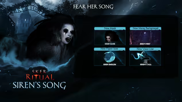Seek retribution from Sker Island and your captors with the hauntingly alluring Siren’s mask. Seek solace in your Bird’s Nest menu background. Entrance your friends and foes with the exclusive in-game Siren’s Call and display your allegiance to the Siren’s Song with the Siren Player Emblem.