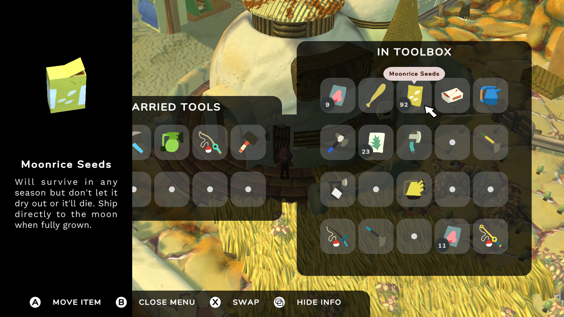A science-fiction farming simulation game set in a small community at the base of a space elevator during the days and seasons leading up to your departure for the moon.