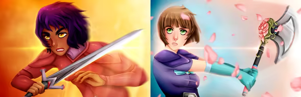 Karuna and Aurelie were friends. Then Aurelie went off and found the infernal armor of Ellicide and became the Evil Overlord Darkloft. Karuna is the only one who can stop her. But Karuna loves Aurelie, even now.