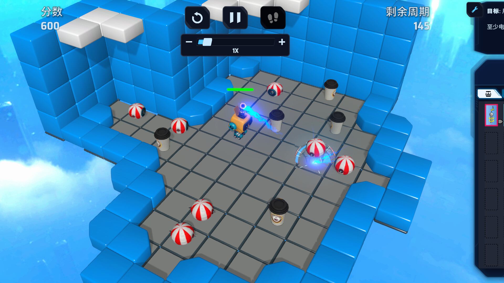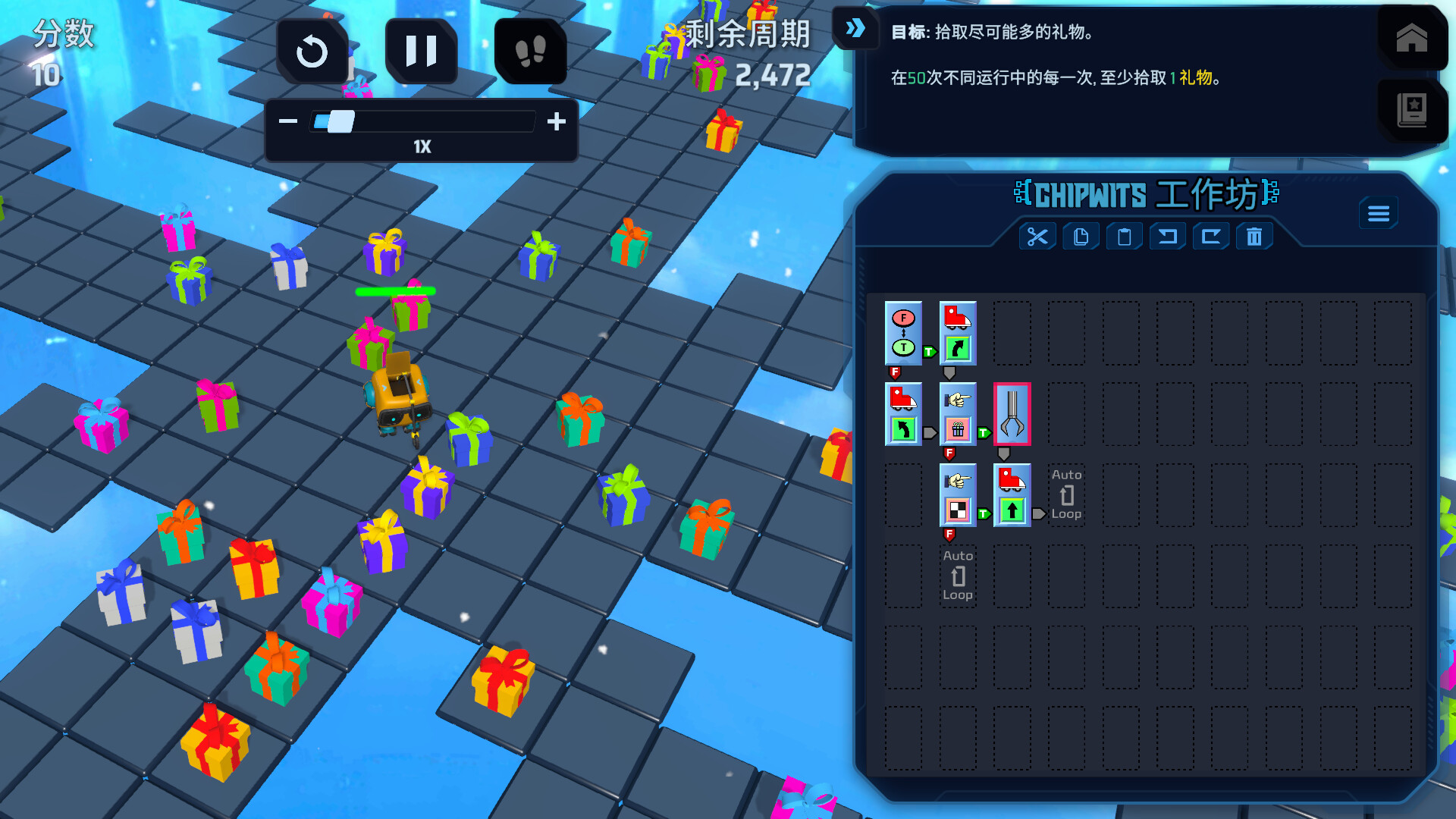 排列这些芯片,找出每个楼层的最佳解法,然后按下“播放”按钮,观看你的 ChipWit 完成任务!