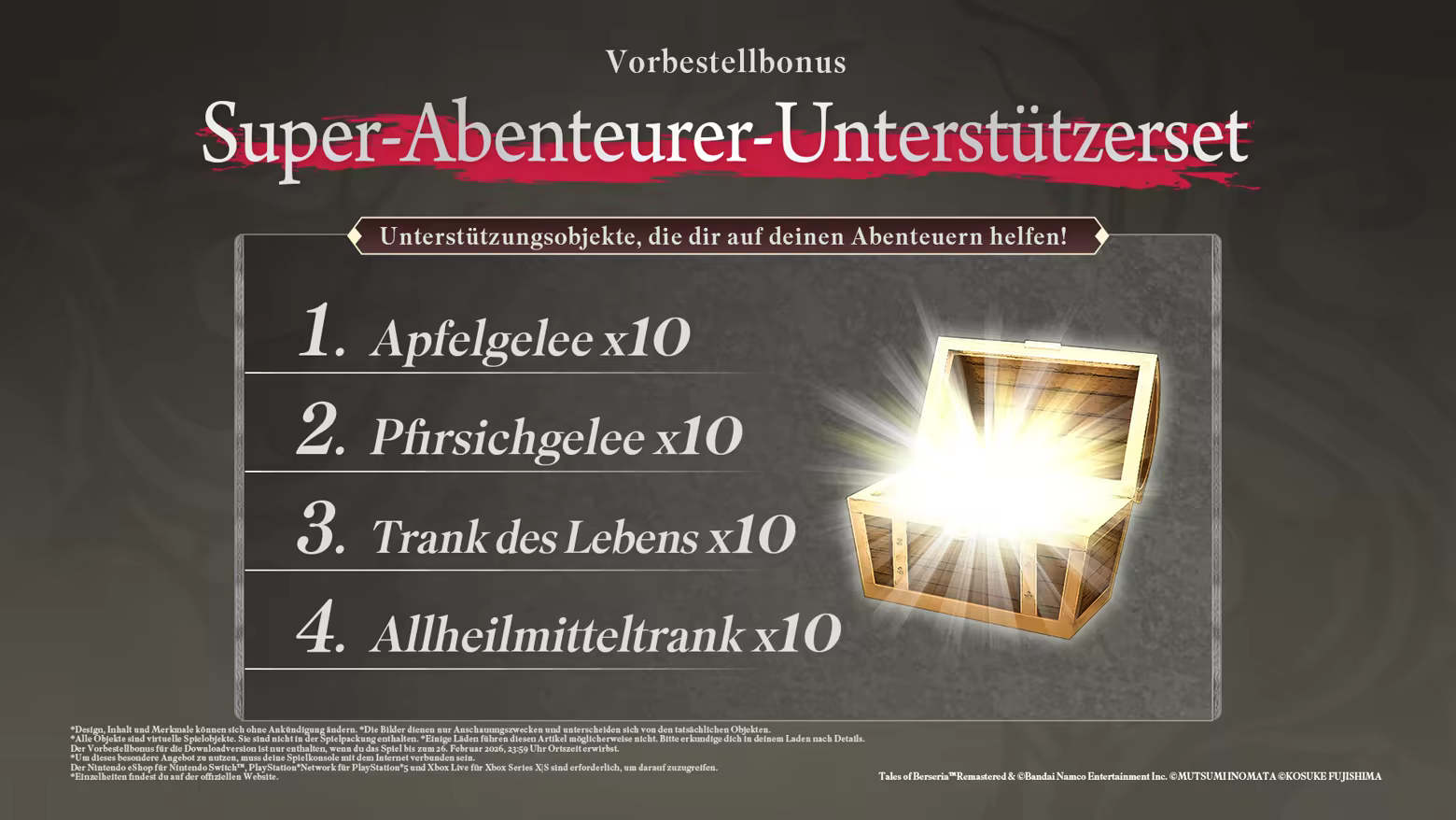 Diese Version enthält mehrere DLCs der Originalversion von 2016. Dich erwartet eine Fülle an Inhalten, darunter Outfits für deine Charaktere aus früheren „Tales of“-Spielen sowie nützliche Ausrüstung.