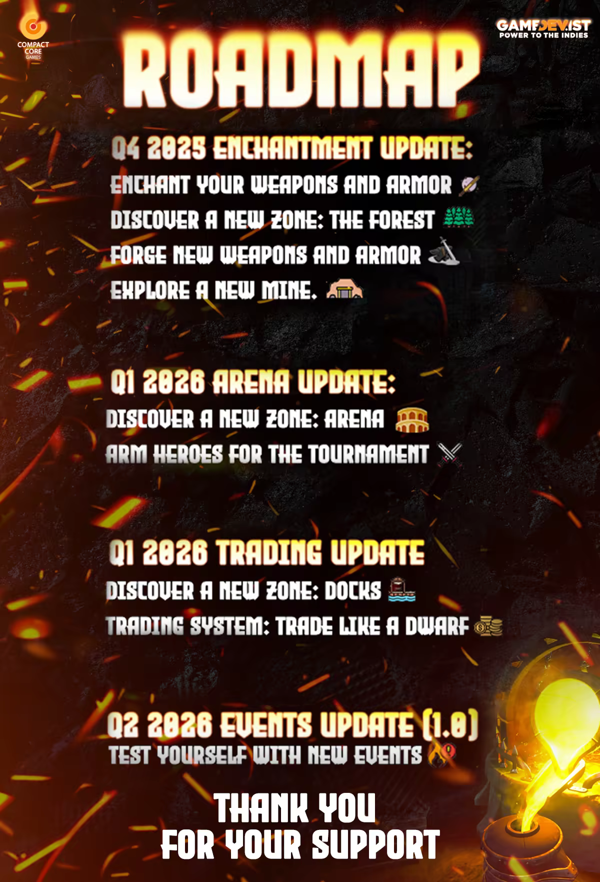 Become the master of fire and steel in an epic journey of craftsmanship, mining, and creation. Craft legendary weapons, enchant mystical artifacts, arm heroes and send them on epic quests for gold and profit. Will you rise as the ultimate blacksmith of a vibrant fantasy world?