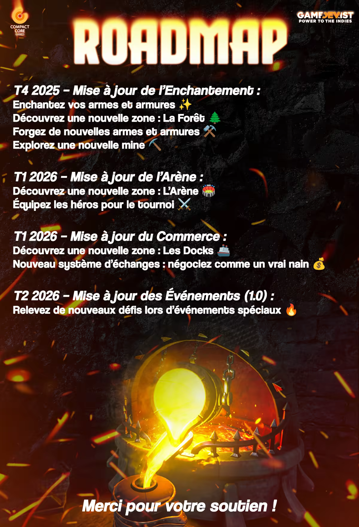 « We plan the full version will have more crafting variations, new forging equipments, more levels, new tools, new customers. We plan to add craftable big war machines and parts, New environmental assets for forge business, The full version of the game planned be a well polished mechanics. »