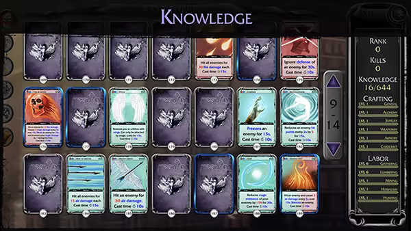Keep track of your diverse card collection, including ability, item, equipment, monster, resource, and recipe cards, by managing them in your knowledge base. Gaining more knowledge about monsters grants you additional advantages in battle, enhancing your strategic prowess.