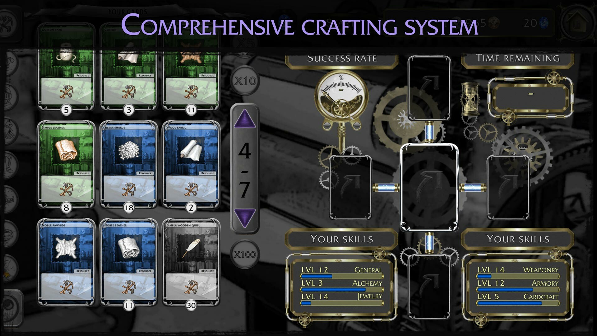 Master the art of crafting by creating your own equipment and item cards across six distinct crafting classes.