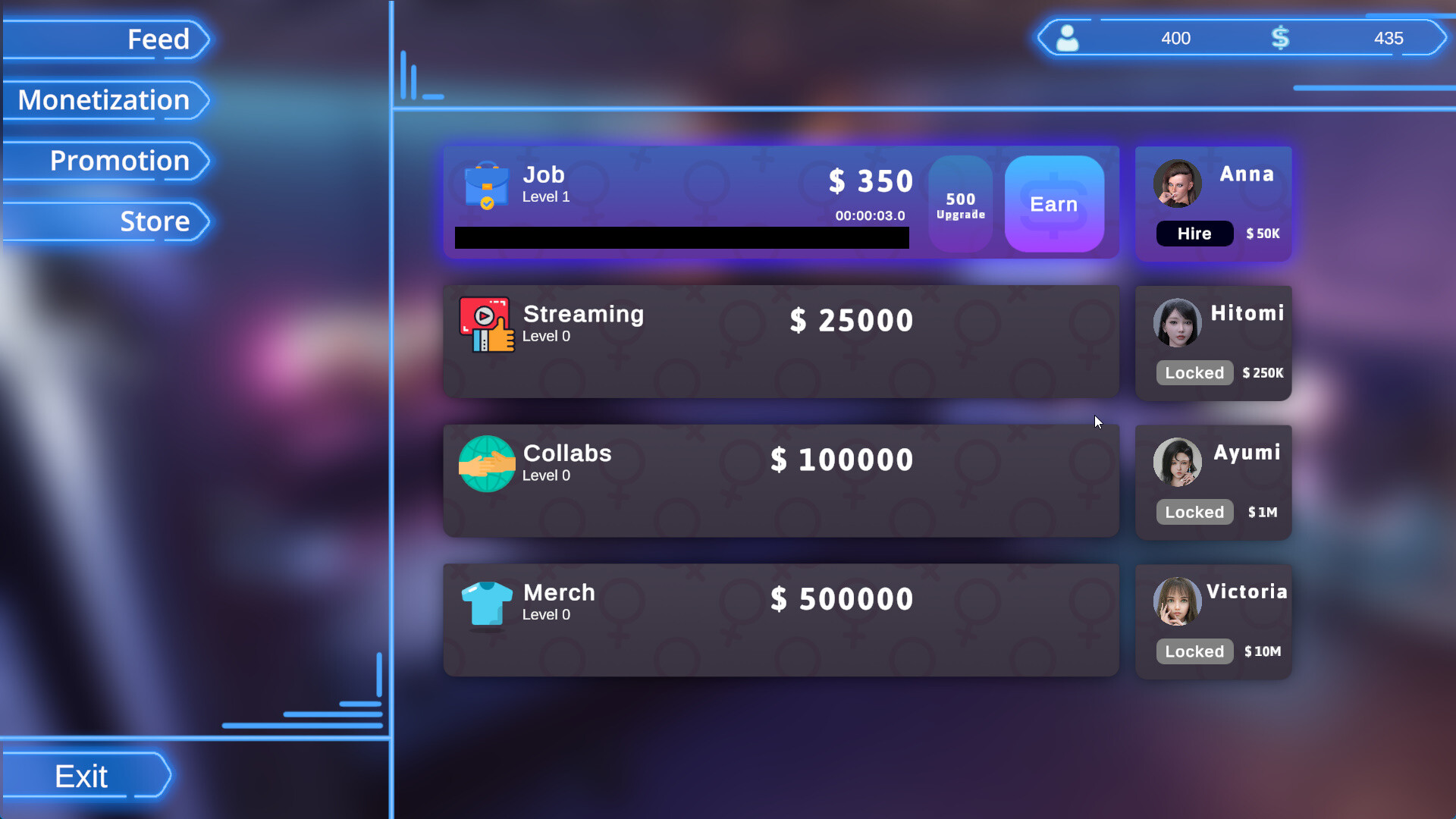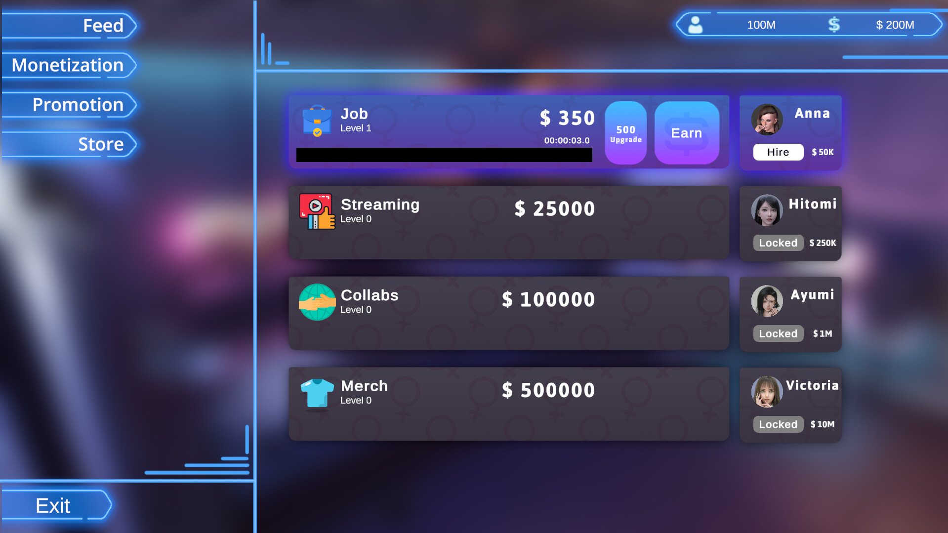 Your goal is to gain as many followers as possible and earn as much money as possible. The more new content you publish, the more you'll be noticed and found by your followers. So be ready for new challenges and enjoy the game, helping your character become a social media star!