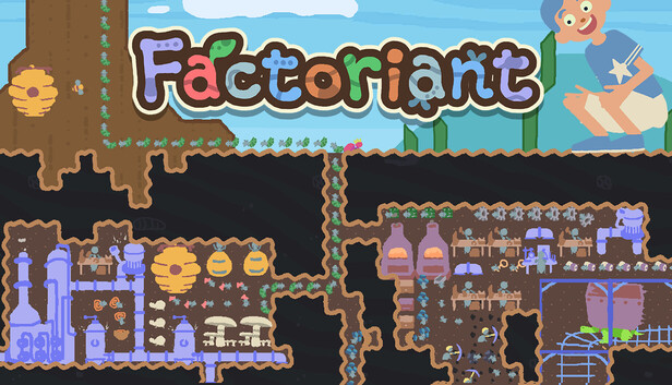 Factoriant is a factory builder where you construct an underground ant factory. As a queen ant, dig tunnels, carry food, and hatch worker ants to automate your production. Defend your nest from threats like birds and humans, and build a subterranean ant colony.