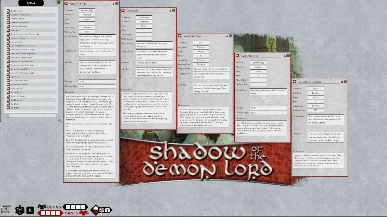 Requires: The free Fantasy Grounds virtual tabletop (VTT) software and a one time purchase of the Shadow of the Demon Lord ruleset.