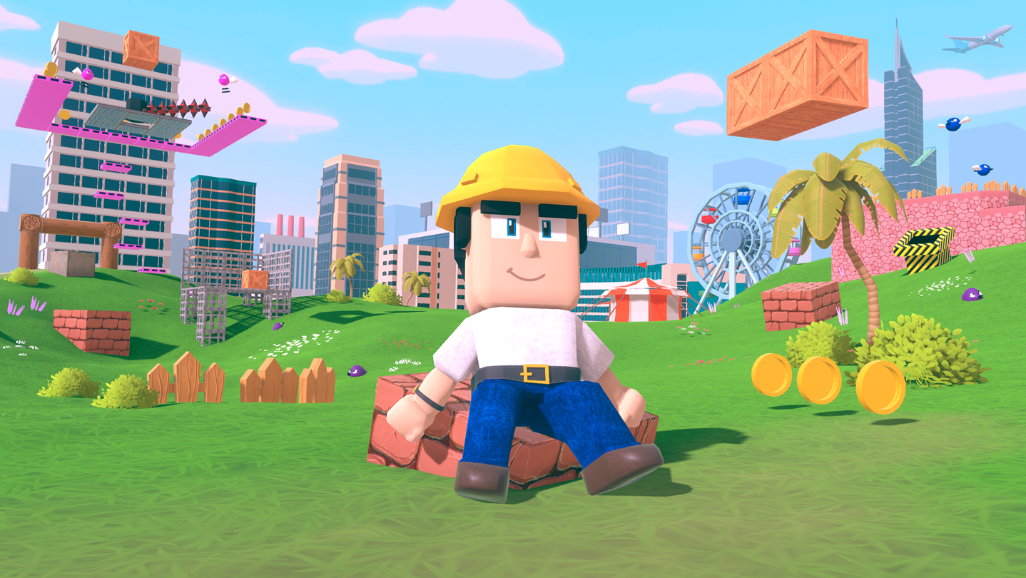 Vous incarnez Master Maker, un jeune bâtisseur qui possède un marteau boomerang spécial capable de collecter des objets, de détruire des caisses et de vaincre des ennemis à distance. Dans cette aventure en 3D inspirée des classiques des années 90, vous pouvez explorer et construire librement. Le mode Aventure propose 50 niveaux colorés dans lesquels vous pouvez puiser l’inspiration pour vos constructions. Il vous suffit de déplacer Master Maker du point de départ jusqu’au drapeau situé à la fin du niveau en sautant d’une plate-forme à l’autre, en éliminant les ennemis et en évitant les pièges. L’outil de création de niveaux vous permet ensuite de créer des niveaux originaux en ajoutant des blocs, des pièces, des pointes, des canons, des arbres, des décorations, des rampes et bien d’autres choses encore.